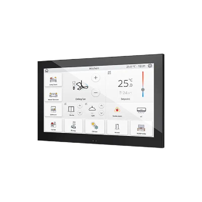 Le Zennio Z100 est un écran tactile KNX domotique de 10 pouces conçu pour le contrôle intégral des installations résidentielles, hôtelières et tertiaires haut de gamme. Doté d’un affichage LCD capacitif en 16 millions de couleurs avec une résolution de 1280 × 800 pixels, il offre une interface fluide, précise et visuellement irréprochable. Son design intemporel et minimaliste s’intègre parfaitement dans tout environnement architectural moderne ou classique, en saillie ou en encastrement double boîtier européen ou anglais standard.